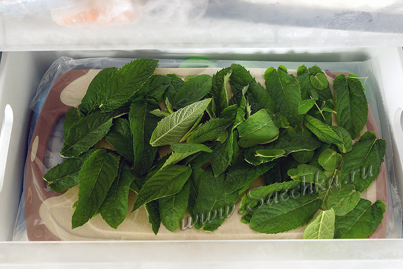 - На следующий день вытаскиваем досочку, замороженную мяту перекладываем в пакет и храним в морозилке до зимы.