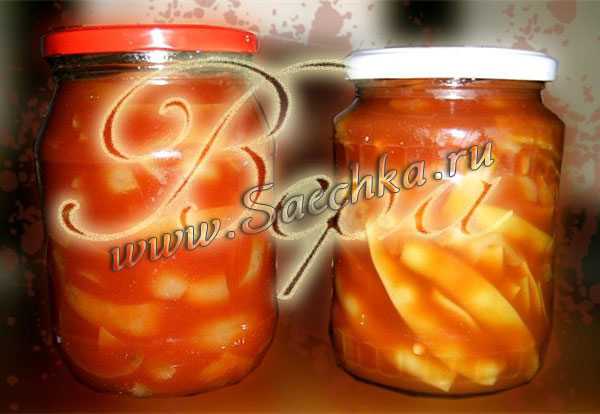 На основе этого же рецепта я делаю фасоль в томате на зиму: фасоль только надо предварительно поварить (минут 10) и почистить от хвостиков.