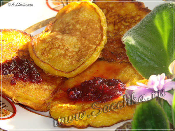 - Жарить тыквенные оладьи на растительном масле с двух сторон до готовности.