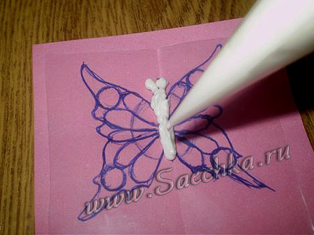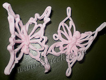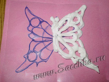 Объемные фигуры в виде бабочек сделаны из айсинга - белковой глазури.