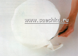 - Держите нож на уровне края подноса и внимательно следите за тем, чтобы срез у сахарной помадки оставался ровным.