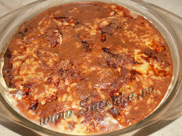 - Можно запечь запеканку с индейкой и рисом в духовке при температуре 200 градусов минут 40-45 до румяной корочки.