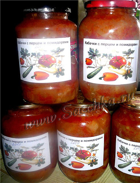 Кабачки приготовлены с болгарским перцем и помидорами - консервирование на зиму: