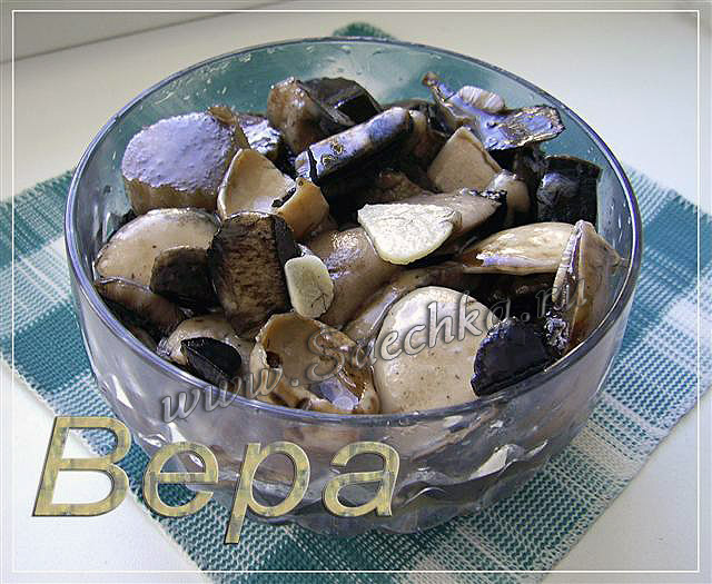 Маринованные грибы приготовлены в рассоле из воды, соли и специй.