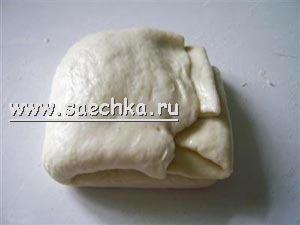 - Снова раскатать тесто, смазать маслом, сложить, убрать в холод. Повторить 3-4 раза.