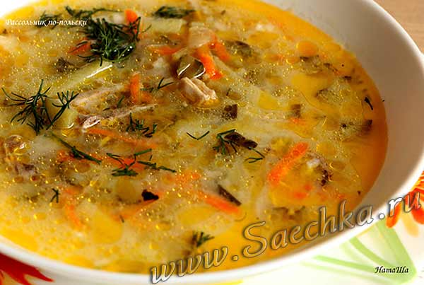 Для того, чтобы получить подобный суп, надо сходить в тему к Свете-Василисе и взять у нее два рецепта рассольника (один и второй). Затем соединить оба рецепта в один и получить свое новое блюдо.