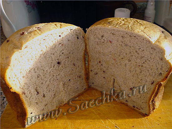 - Сложить ингредиенты для хлеба в указанном в инструкции порядке, выпекать в хлебопечке.