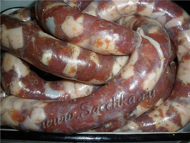 - С колбасками ничего пока не делала. Они без добавки воды, так что должны хорошо храниться в холодильнике. А если просто оставить в холодильнике на тарелочке надолго - то колбаса завялится и будет очень вкусная.