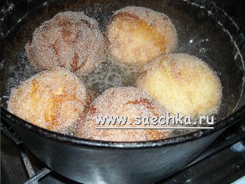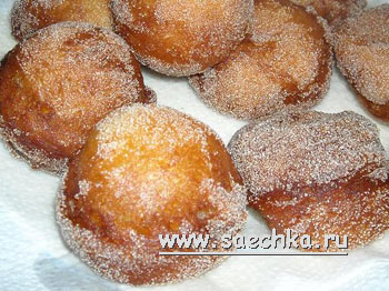 - Как только пончики хорошо зарумянились с двух сторон, вынимаем их на салфетку (масло должно немного стечь).