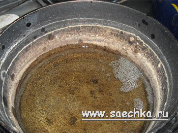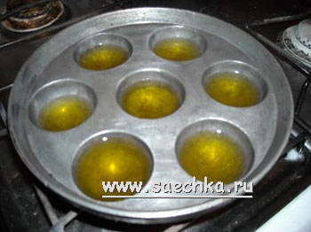 - В посудину (форму, сковороду) наливаем масло и разогреваем его на медленном огне (извините, девочки, но моя форма старушка, она от работы уже белой стала, верно служит!)