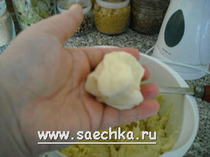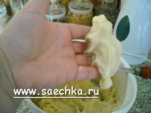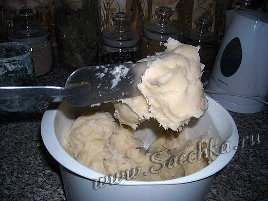 - Постепенно добавляя муку, замесить довольно крутое, но мягкое заварное тесто.