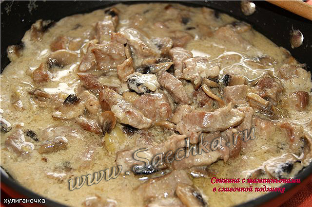 Свинина с шампиньонами в сливочном соусе