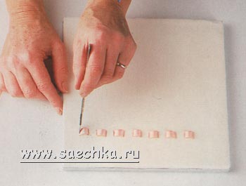 - Очень тонким ножом или скальпелем аккуратно нанесите по разметке прорези на помадке.