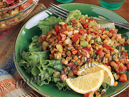 - Выложить фасоль на блюдо, посолить, поперчить по вкусу, заправить майонезом, украсить маринованными гогошарами и огурчиками.