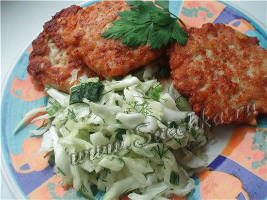 - Разогреть в сковороде топлёное масло и жарить биточки по 7 минут с каждой стороны, до образования хрустящей корочки.