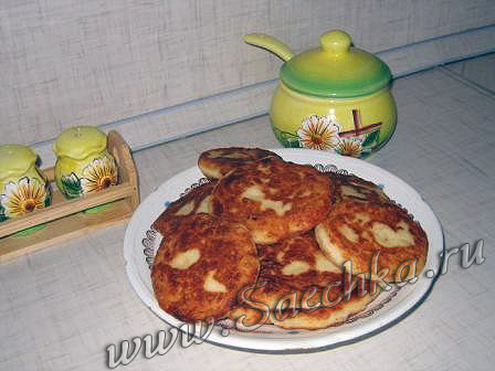 Творожники приготовлены с картофелем, а подают их горячими со сметаной, да сметаны должно быть побольше!