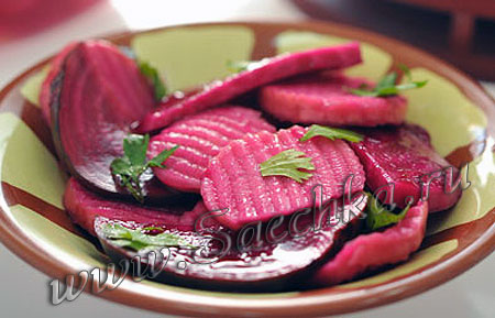 - 1 свекла среднего размера (нарезать на пласты или дольки).