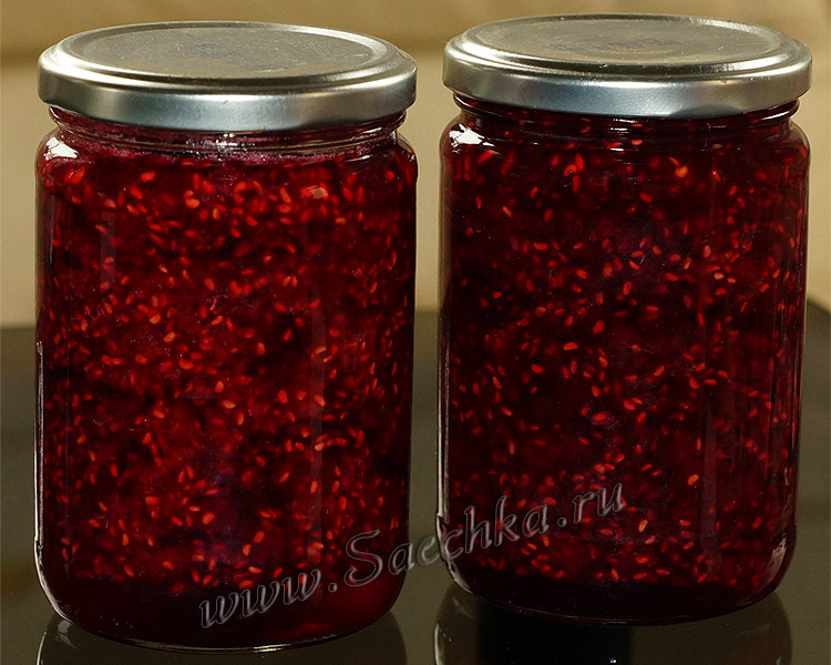 Классический желированный малиновый джем готовится из ягод малины и сахара.