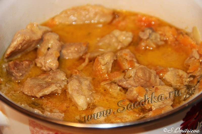 Тушёная свинина с овощами в майонезно-горчичном соусе