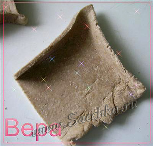 - Углы теста защипнуть так, чтоб получилась плоская коробочка.