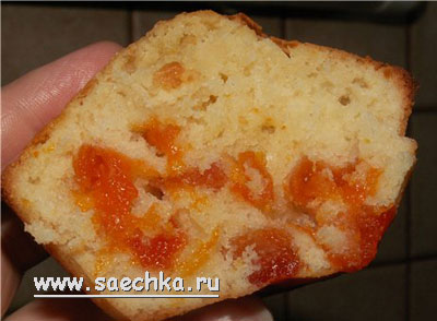 - Далее добавить цедру, порезанную мелкими кубиками курагу и просеянную муку.