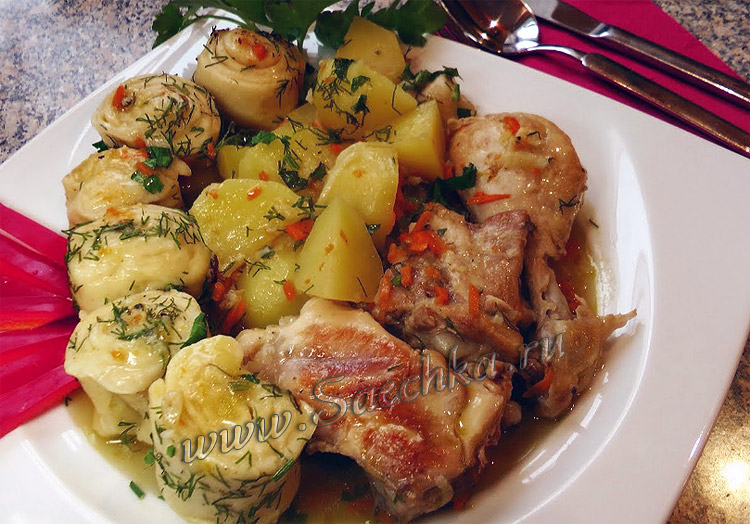 - Штрули смачивать в растительном масле, уложить сверху на картофель.