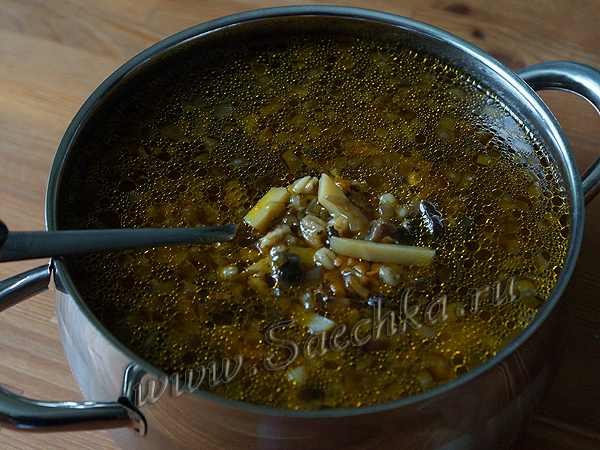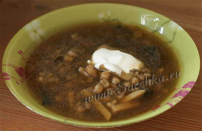 Грибной суп с перловкой и картошкой, заправленный сметаной, получился очень вкусным!