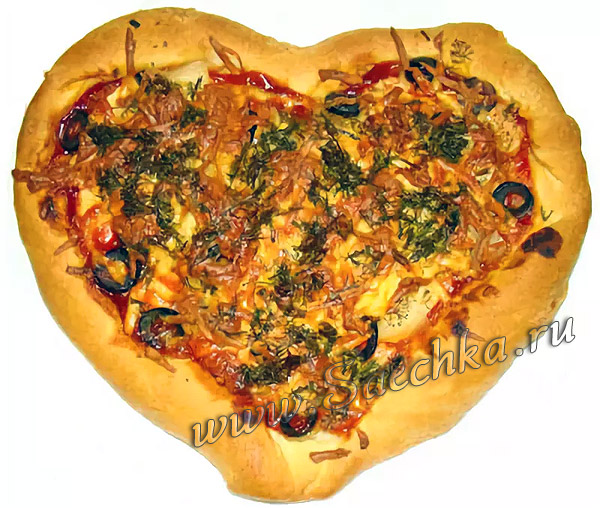 Пицца «Валентинка» приготовлена в виде сердечка на день Влюблённых моему любимому человеку.