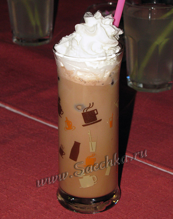 - Холодную воду, растворимый кофе, охлажденное молоко, сливки и сахар хорошо перемешать. Вылить в высокий бокал.