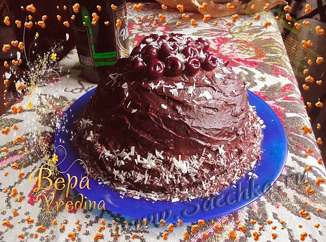 Торт «Черешня в шоколаде» - выигрышный вариант для праздничного торта, т.к. здесь необычное сочетание сочной ягоды и шоколадного бисквита.