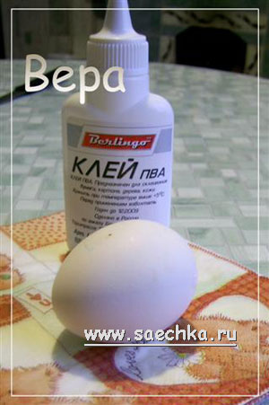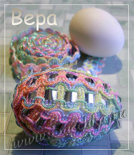 Пасхальные яйца украшены с помощью тесьмы и клея.