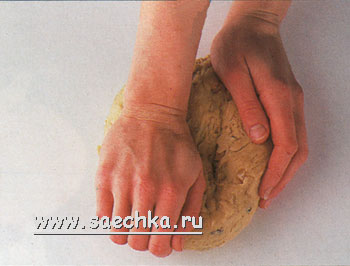 - Месите тесто на слегка посыпанной мукой рабочей поверхности в течение 5 минут, пока оно не станет пластичным.