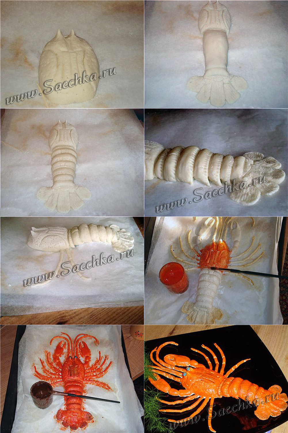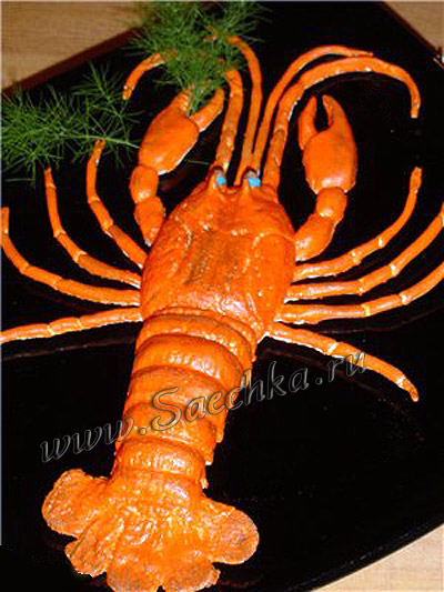 Предлагаю слепить и выпечь такого вот «рака» из пресного теста. Конечно, для его приготовления потребуется терпение и усидчивость. Зато как эффектно будет смотреться на праздничном столе!