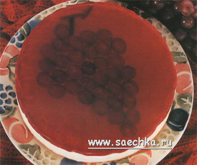 - Осторожно вылейте смесь с виноградным соком на ватрушку и опять поставьте в холодильник для полного застывания.