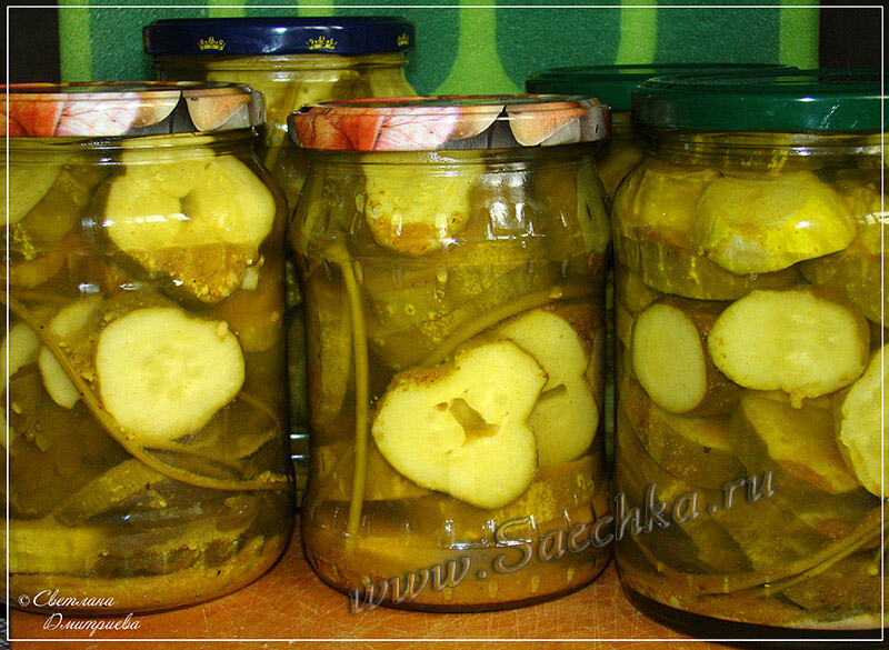 «Восточные» огурцы приготовлены на зиму с карри: получаются вкусные, хрустящие, с пикантным вкусом маринованные огурчики.
