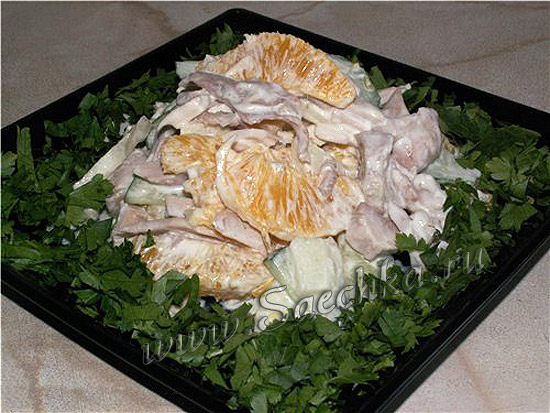 Классический салат «Каприз» приготовлен с курицей и фруктами - очень сочно, свежо! Попробуйте и вы!