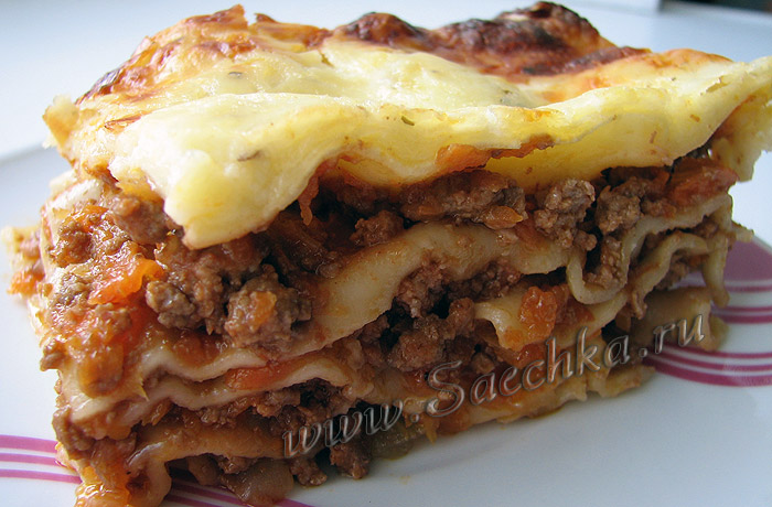 - Укладывала слой листов для лазаньи, слой фарша - у меня вышло 5 слоев.