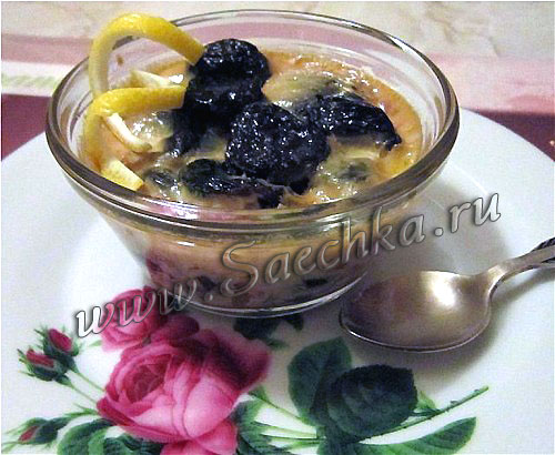 - Сладкоежки могут потом посыпать чернослив с молоком сахарным песочком и поставить под гриль еще минуты на три.