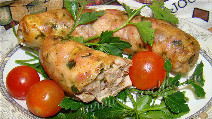 - Начинить промытые, вымоченные кишки, выпекать в духовке 30 минут при 200 градусов С.
