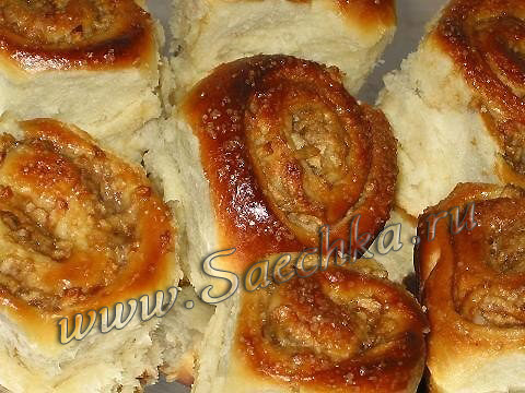 - Булочки смазать взбитым яйцом, посыпать сахаром и/или корицей.