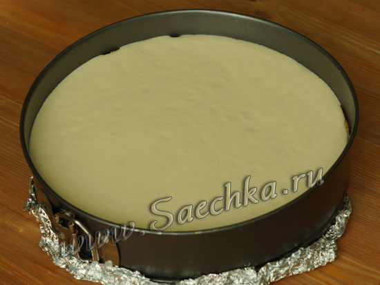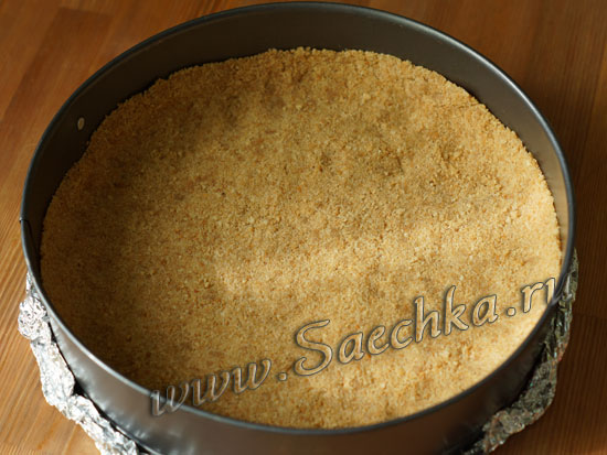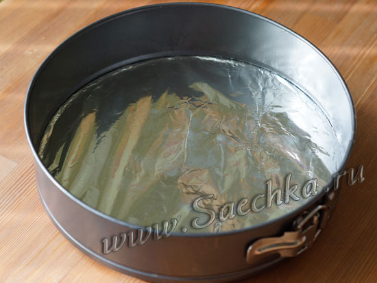 - Разъемную форму застелить в 2 слоя фольгой, чтобы чизкейк затем было легче доставать:
