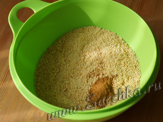 - Печенье измельчить в крошку (я быстро делаю это на комбайне), добавить корицу, перемешать.