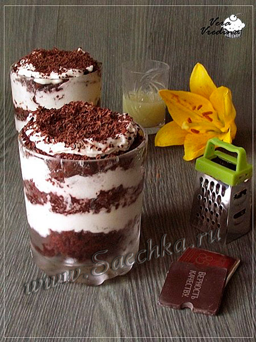 Слоёный десерт приготовлен со сливочным сыром, взбитыми сливками и бисквитом «Шоколад на кипятке».