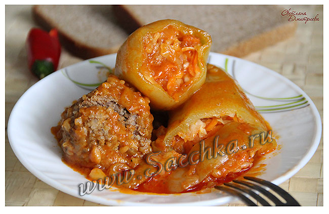 Фаршированные перцы любят многие, ну почти все. Только некоторые любят перцы с овощами, а некоторые - с мясной начинкой. Попробуем угодить сразу всем.