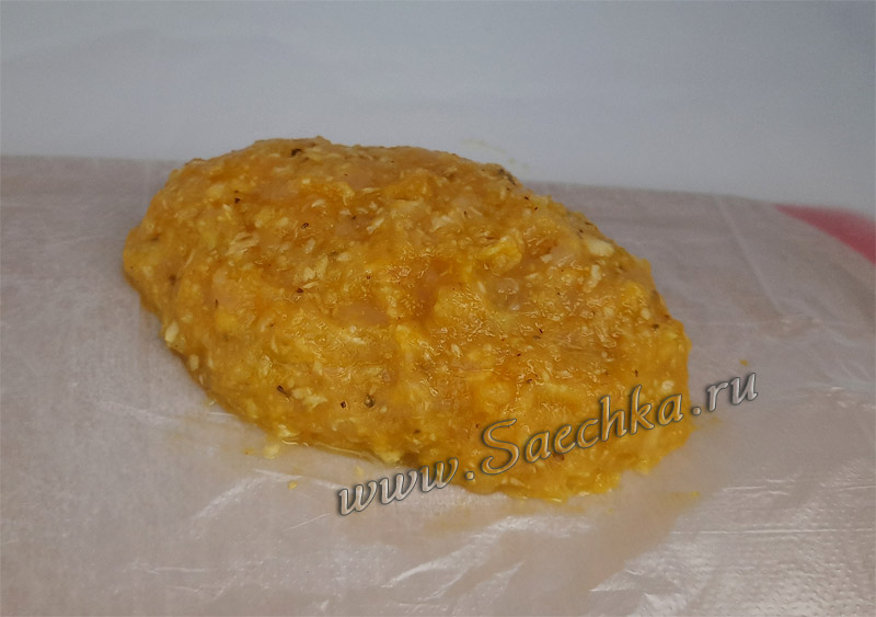 - У меня фарш остался, поэтому я сформировала из него котлетку и заморозила: