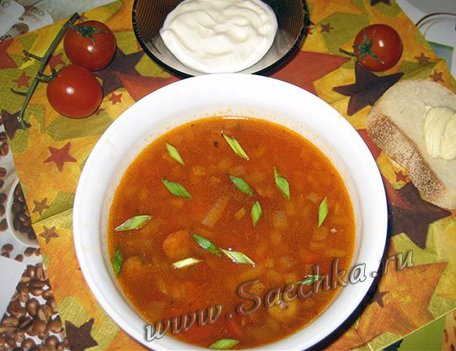 - Подавать фасолевый суп со сметаной, посыпав рубленой зеленью.