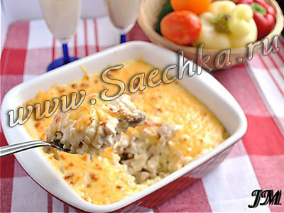 - Посыпать сверху оставшимся сыром и поставить в духовку (210 градусов) минут на 10.