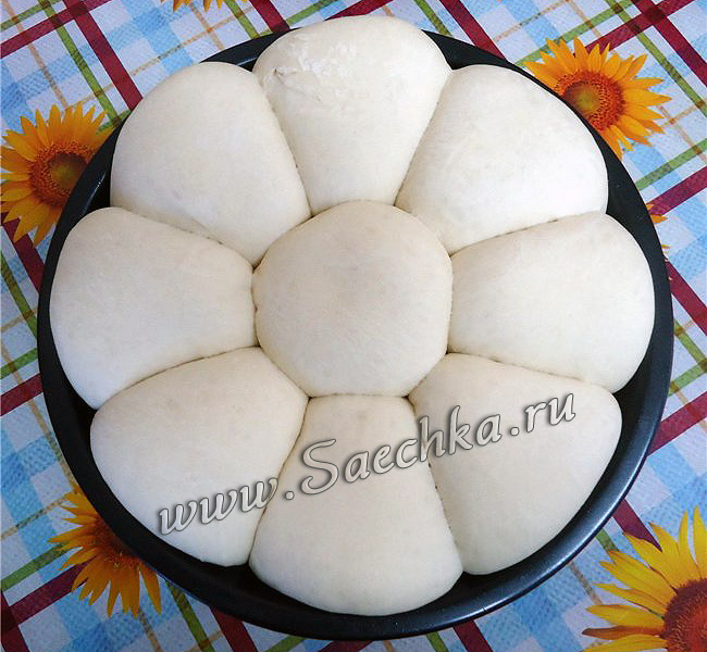 - Форму смазать маслом, выложить в форму в виде ромашки.