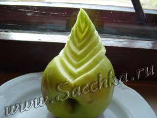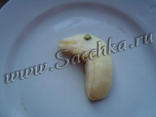 - Делаем надрез в области верхушки яблок для того, чтобы вставить лебединую шею.