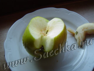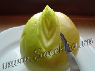- Берем яблоко и под острым углом делаем два V-образных разреза: